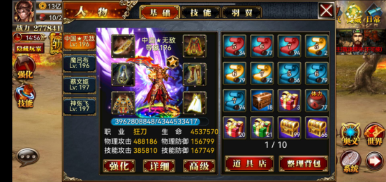 中國無敵:等級跟翅膀吧,等級幾年沒更新了,這次更新上限很不錯